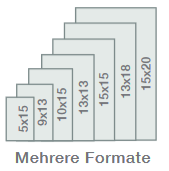 5 x 15 cm | 10 x 15 cm | 13 x 13 cm (Sonderformat)| 13 x 18 cm (Sonderformat)| 15 x 20 cm | 15 x 23 cm (Sonderformat) |